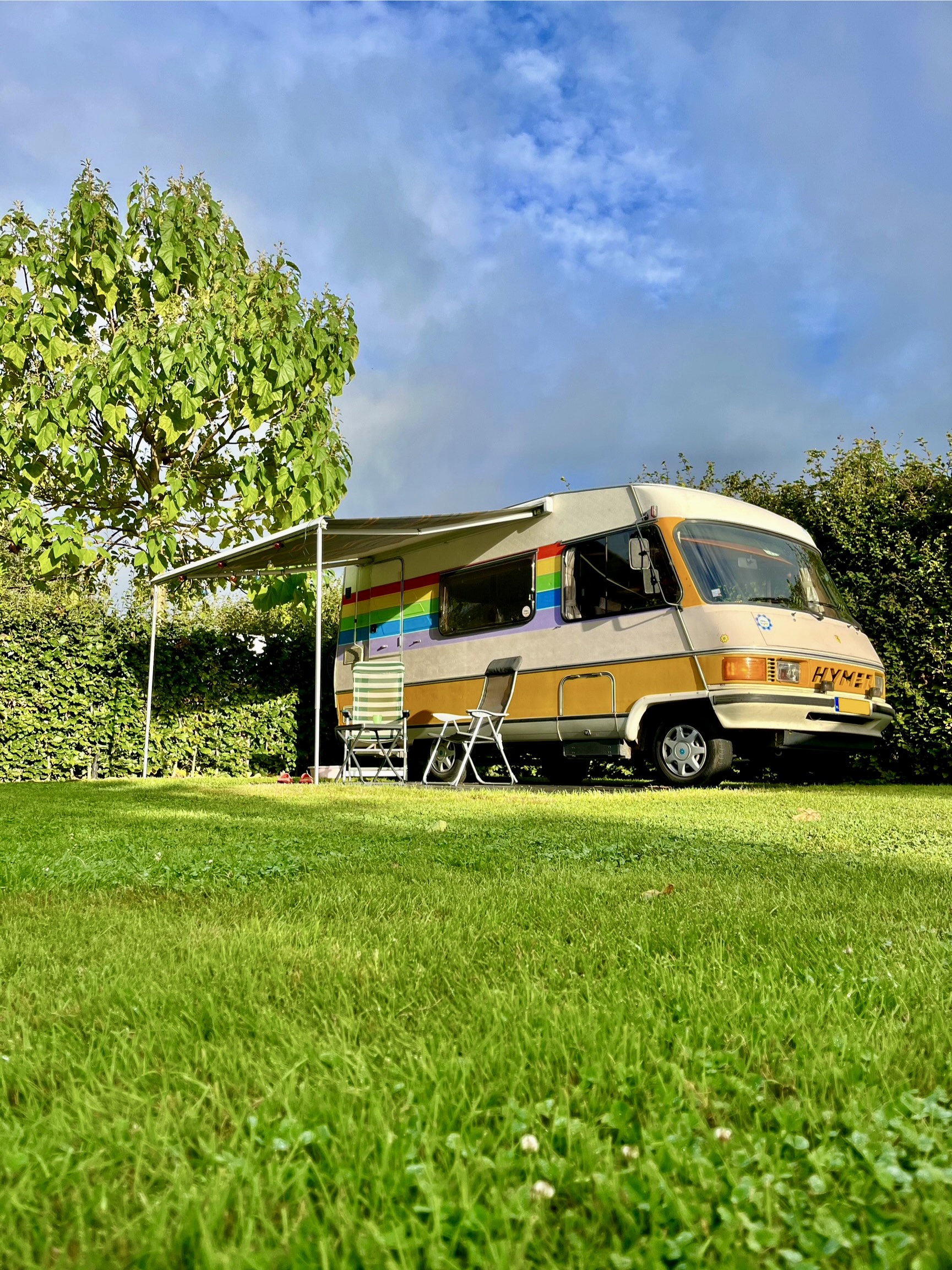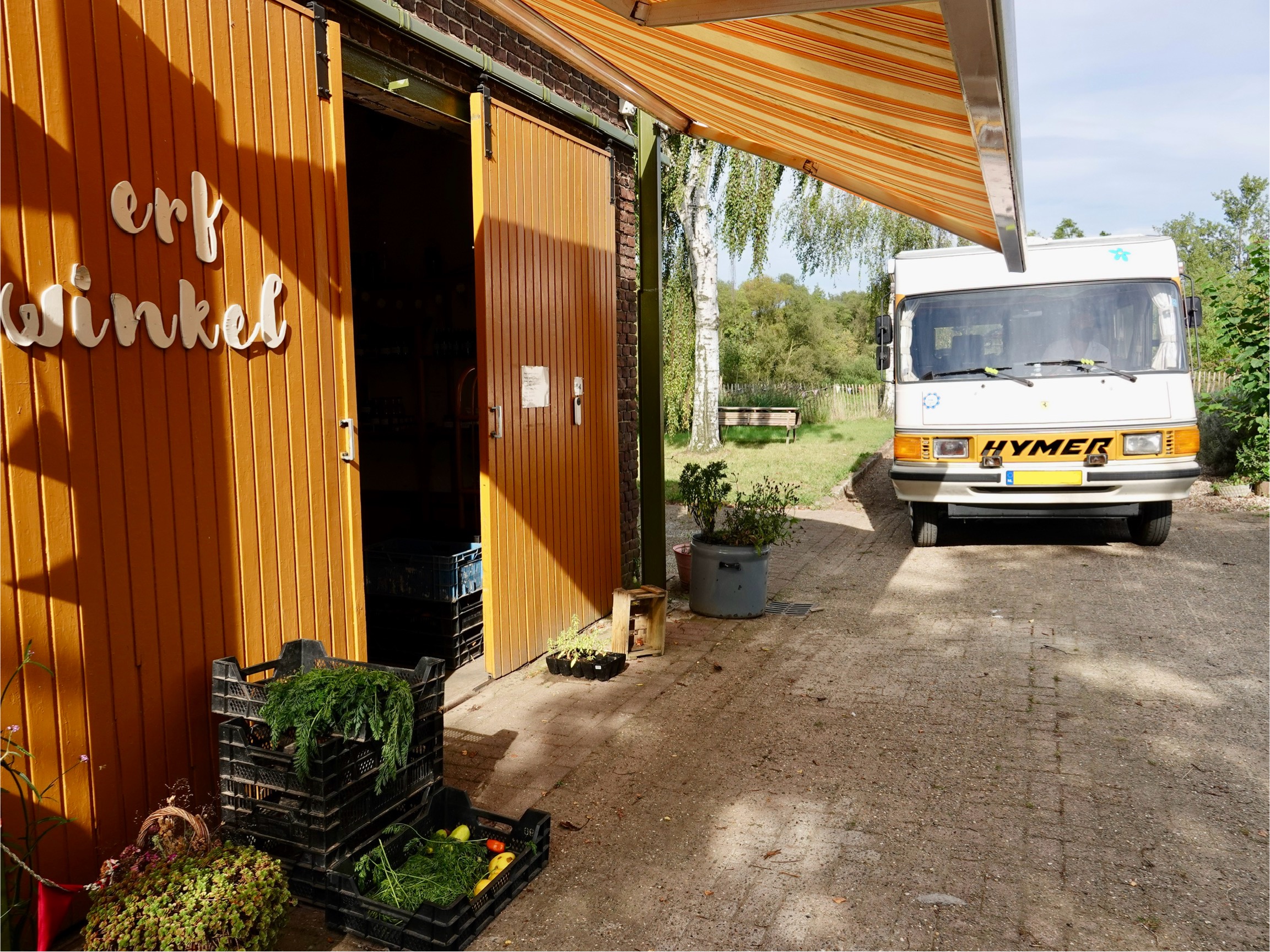 A pesar de todas las divertidas aventuras, todavía tenemos que trabajar. Lo hacemos (en parte) en línea, con Dolly como nuestra oficina. Estamos encantados con el excelente wifi del Camping van Kempenhof, que cuenta con un total de 38 amplias parcelas. La propietaria, Janine, gestiona el camping con su madre Corrie, y su hermano Rick tiene una pizzería con terraza cubierta en la propiedad, donde disfrutamos de una deliciosa pizza por la noche.